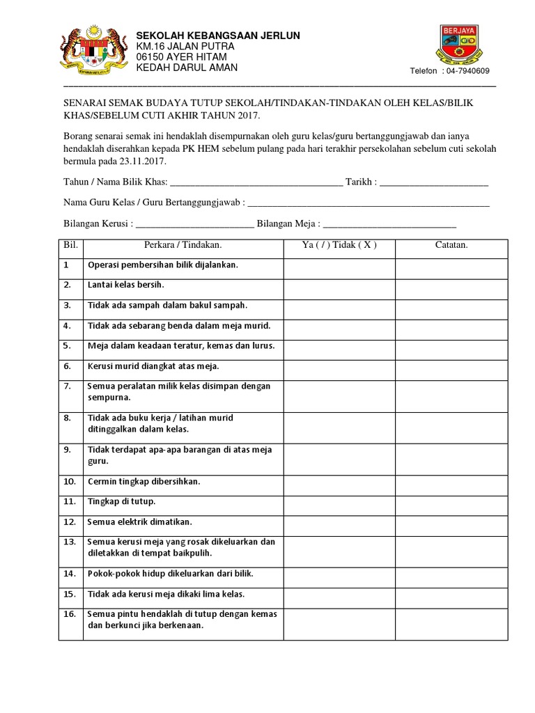 Borang Budaya Tutup Sekolah 2017 Pdf